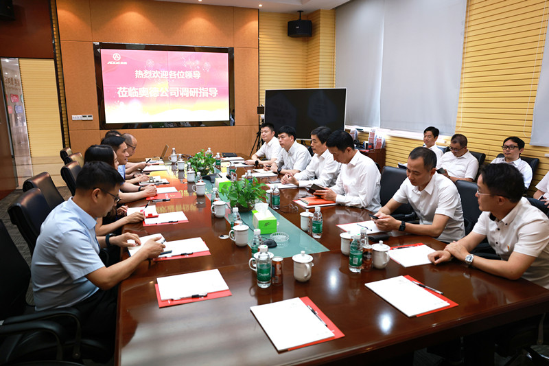 管书记一行参观完奥德展厅后,在奥德会议室进行了座谈交流,奥德公司从主要业务、规模增长、资本运作、核心优势等方面做了详细介绍,并获得了管书记一行的肯定,管书记在仔细询问奥德上市工作进展时,并就奥德上市过程中遇到的问题进行了回应。