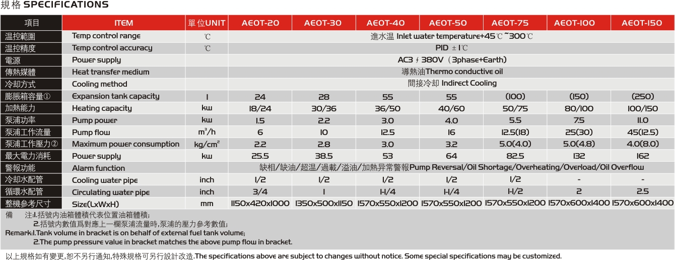 | ◆ 防爆装置(选购) ◆ 吹气回油功能(选购) ◆ 回油温度显示表 ◆ 开机自动排气功能 ◆ 加热功率切换功能 ◆ 负压系统运转(选购) ◆ RS485通讯功能,实现自动化管理(选购) ◆ 关机延时冷却功能(选购) ◆ 隔离式电器控制箱,延长电器使用年限 | ◆ 热油BY-PASS泄压回路 ◆ 多点温度控制机组可订作 ◆ 油泵马力和加热功率可订作 ◆ 电器采用SIEMENS.Weidmuller. LS.MOELLER.ABB.WEST. ◆ 温度控制范围: 进水温度+45℃→300℃ ◆ 通过CE认证 ◆ 不锈钢一体管路,减少管阻及锈垢 ◆ 控制方式: 采用进口微电脑或(选购)PLC控制 ◆ 安全保护完善,故障显示, 维修、保养无需专业人员 |
